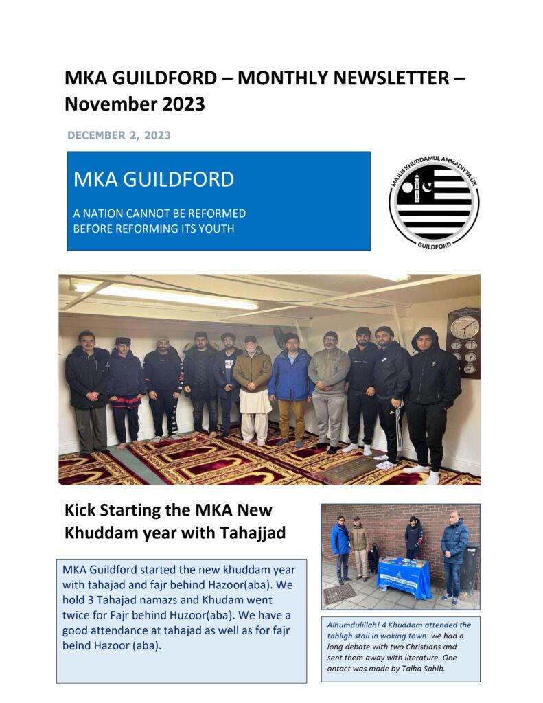 December 5, 2023 December 5, 2023Categories Bashir Region NewsletterMKA GUILDFORD NEWSLETTER – NOVEMBER 2023