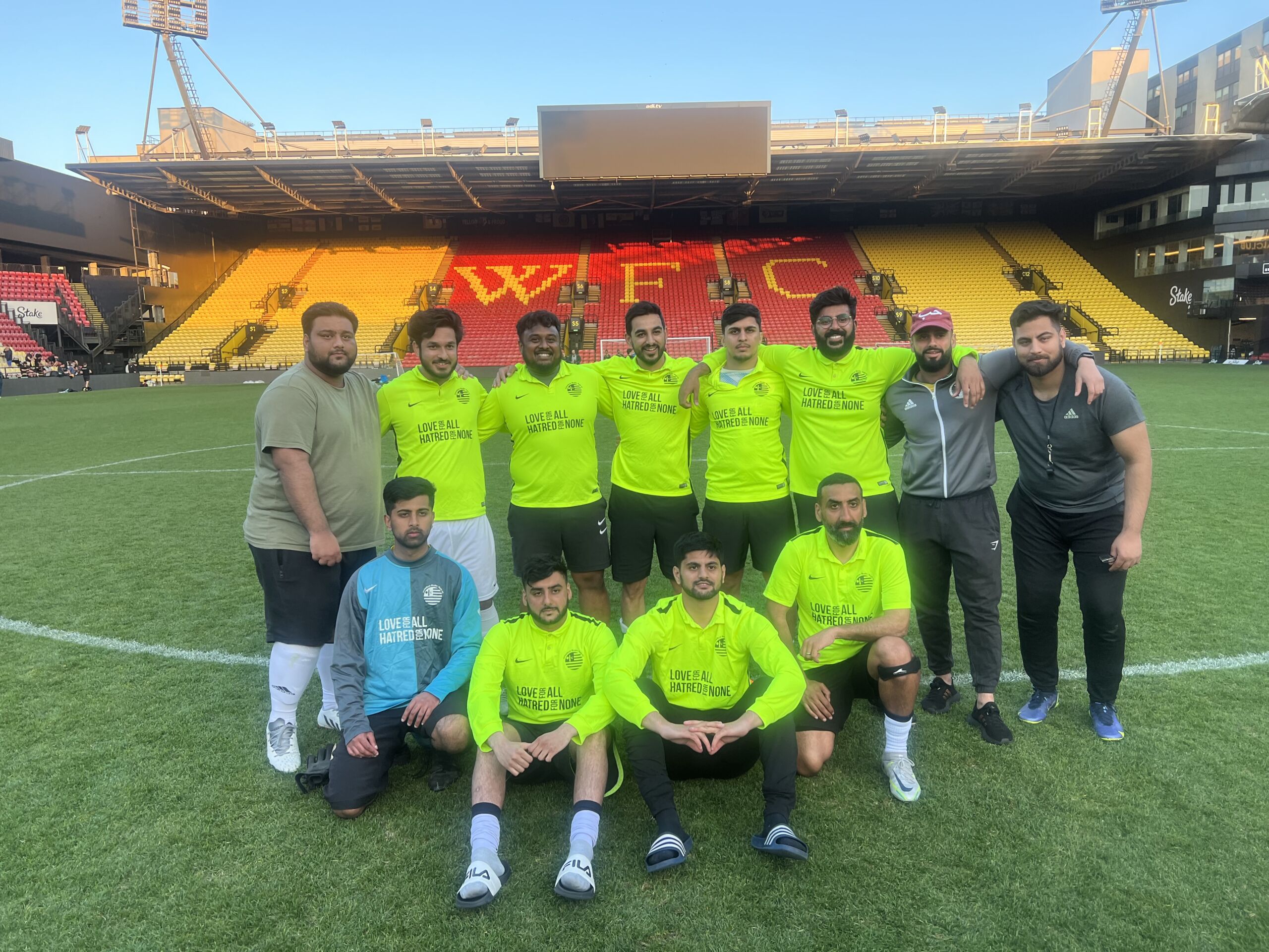Over six hundred individuals, including local youngsters, grassroots football team players, adults, members from Ahmadiyya Muslim Youth Association (AMYA) UK, and participants from community programs delivered by Watford Football Club Community Sports and Education Trust (Trust), came together to participate in a remarkable 24-Hour Football Marathon. The charity event, held on Saturday 20th and Sunday 21st May, took place across Vicarage Road Stadium and Watford FC’s Training Ground in London Colney. AMYA UK partnered with the Trust for this event, which was sponsored by WTW, to raise vital funds for both the Trust and fellow charity Humanity First.