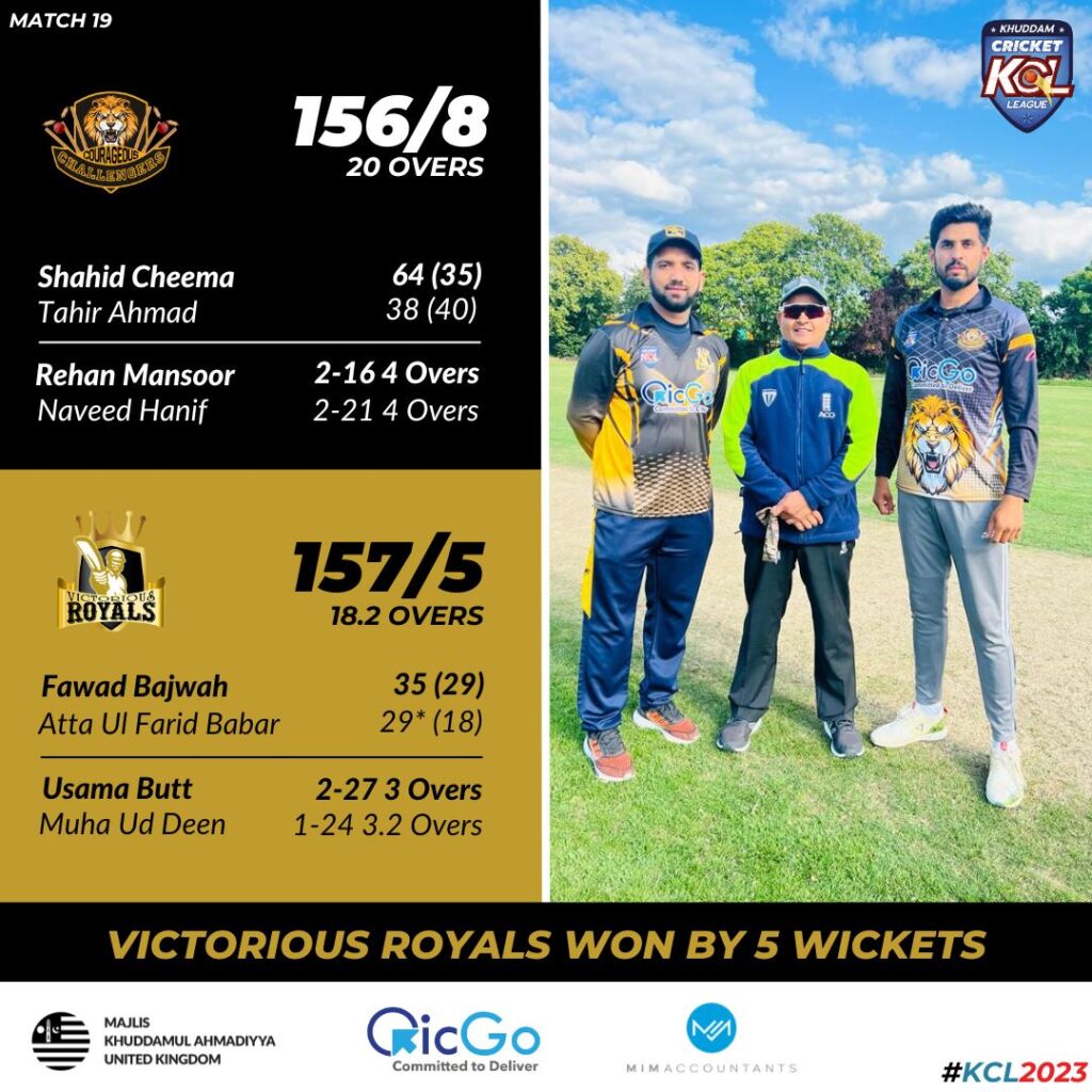In the last few games before the Jalsa Salana break, two impressive sides in Challangers and Royals locked horns at Alexandra Park for a massive clash in the KCL
