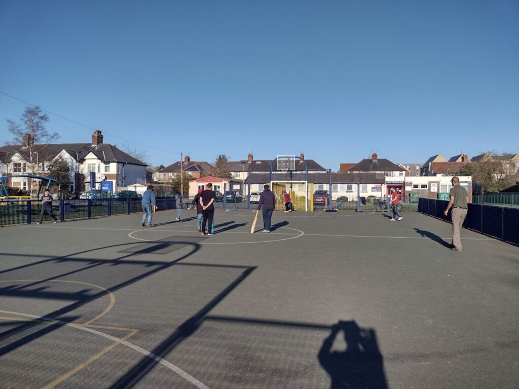 Members of Majlis Khuddam ul Ahmadiyya Oxford mowing the grass and making the garden of Baitul Shakoor tidy.