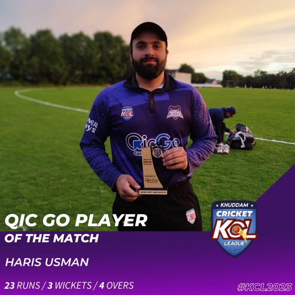 Harris Usman who was now the leading wicket taker of the league had a big role to do with Muha Ud Deen (66* off 33 balls) in front of him, and 19 runs between both sides and a semi final spot. The final battle between the two gun all-rounders was underway, and Muha Ud Deen wanted to manipulate the field looking to ramp towards fine leg, however the pace of Harris got the better of him as the ball clipped the ball with Muha Ud Deen missing! This was the wicket that sealed the win for the Conquerors, as the remaining batsmen from the Challengers could not clear the boundary 3 times in the last 5 balls.